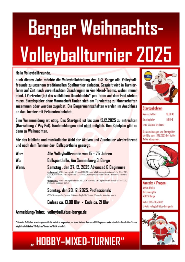 27./28. Dez. 2025: Weihnachtsvolleyballturnier in der OBS Ballsporthalle