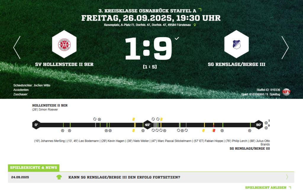 FB 1. Kreisklasse 18.9.2025: SG Grafeld-Berge II mit Remies gegen die Eintracht aus Neuenkirchen29. September 2025