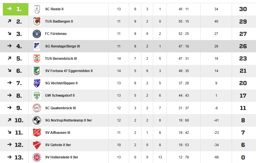 Mit diesem Sieg zog FC Fürstenau an SG Renslage/Berge III vorbei auf Platz drei. SG Renslage/Berge III fiel auf die vierte Tabellenposition.