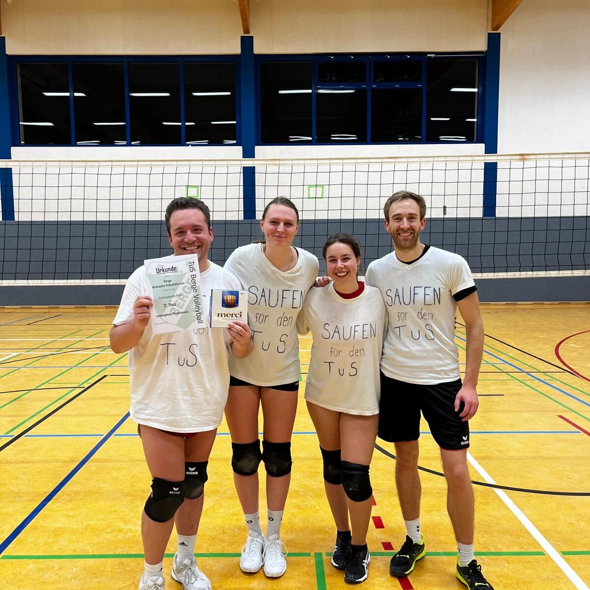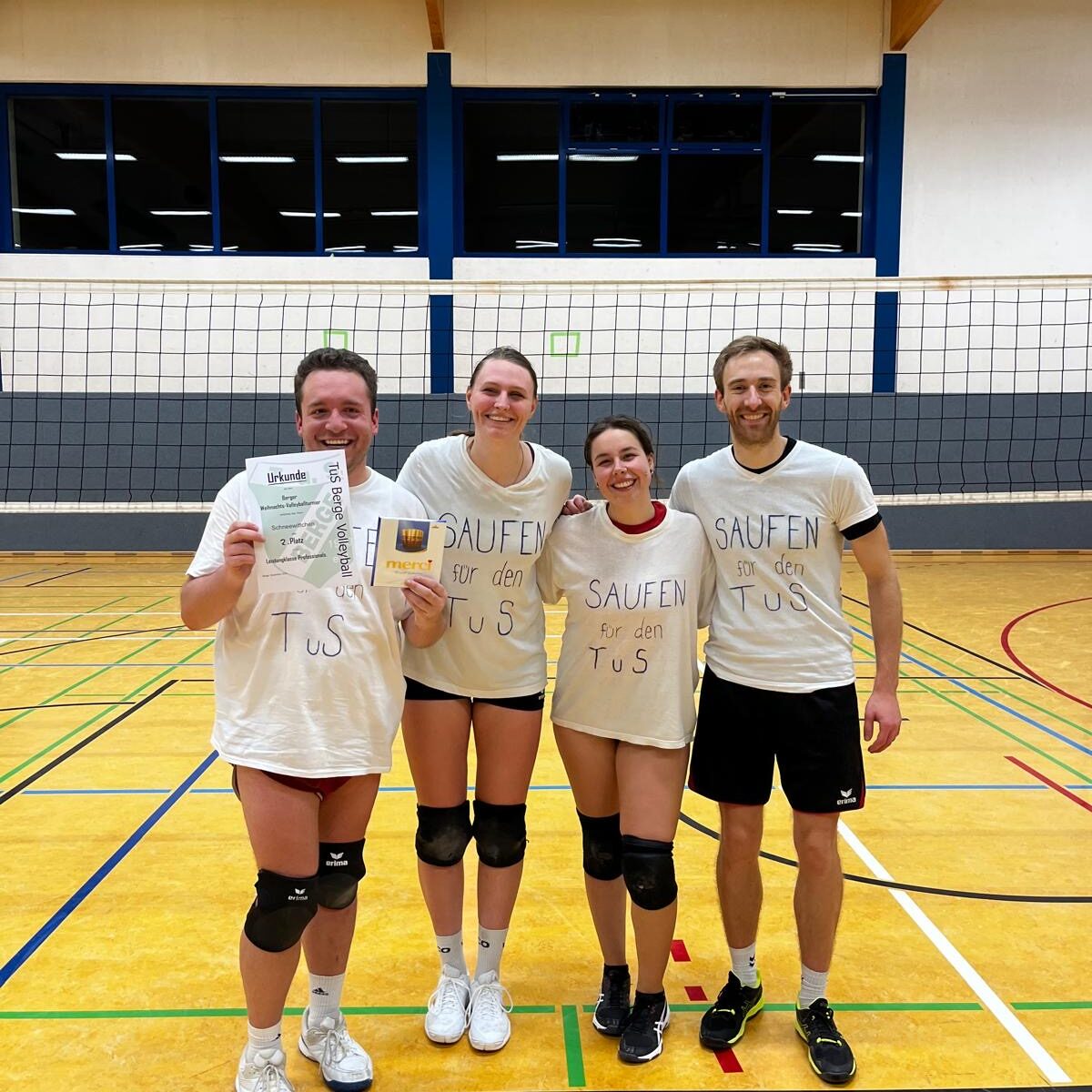 auch dieses Jahr hatte die Volleyballabteilung des TuS Berge alle Volleyballfreunde zu einem Spaßturnier einladen. Gespielt wurde in Turnierform auf Zeit nach vereinfachten Beachregeln in 4er Mixed-Teams, wobei immer mind. 1 Vertreter(in) des weiblichen Geschlechts* pro Team auf dem Feld stehen musste. Ein Team beststand 4–6 Spielern. In diesem Jahr kamen gleich 20 Teams aus ganz Nordwest-Deutschland zur 9. Auflage des Turniers.